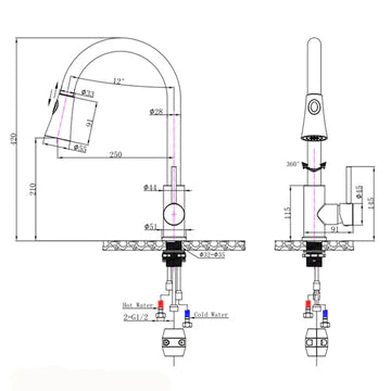 Get rid of traditional kitchen taps and install a fancy kitchen mixer tap with the fashionable matt black finish. The pull-out kitchen tap is the perfect appliance to wash dishes, food and clean basins, with a 360° swivel spout which is a practical use in your kitchen. Like a handheld hose it makes life a little easier and a lot more alluring and its solid brass construction will sure that it doesn't rust. It has a WELS approved 6-star energy rating that meets all Australian standards of 4L/min meaning you won't waste water. Coming with everything you need to easily install into your current kitchen fixtures, plumbing installation is a breeze.